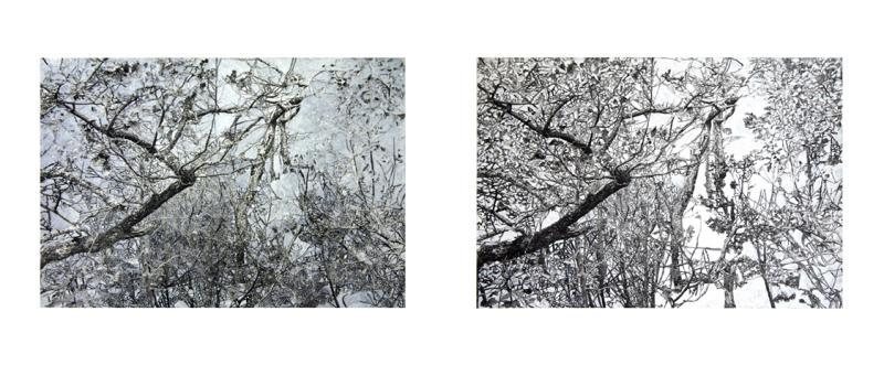 Zwei Arbeiten aus einer Serie von fünf: OUT THERE, IN THE DEEP, WOODS, HIDING, SECRETS.