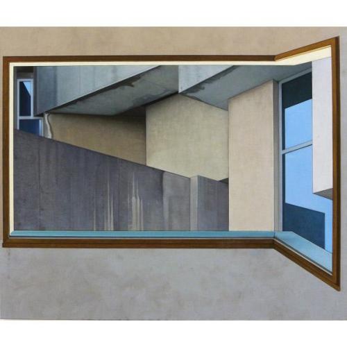 DescriptionSeit einiger Zeit beschäftige ich mich in meiner Malerei intensiv mit Architektur, Räumen, und der Darstellung von diversen Materialien, wie Beton, Holz, Stahl oder Glas. Speziell der oft geschmähte und unbeliebte Architekturstil der Moderne des „Brutalismus“, dessen Bezeichnung sich vom französischen „béton brut“ – roher, unverputzter Beton ableitet, beeindruckt durch sublime, monumentale, sowie expressive Formen. Die Arbeit ist inspiriert durch die Architektur der Kirche zur Heiligen Dreifaltigkeit, besser bekannt als „Wotrubakirche“, im 23. Wiener Gemeindebezirk, welche aus über 150 unterschiedlich großen Betonblöcken besteht und dem Stil des Brutalismus zugeordnet wird. Dabei wurden Detailansichten der Wotrubakirche Schicht für Schicht mit Gouache- und Ölfarbe auf Leinwand aufgetragen, mit anderen Architekturelementen, als auch Formen kombiniert und Perspektiven Flächen gegenübergestellt.